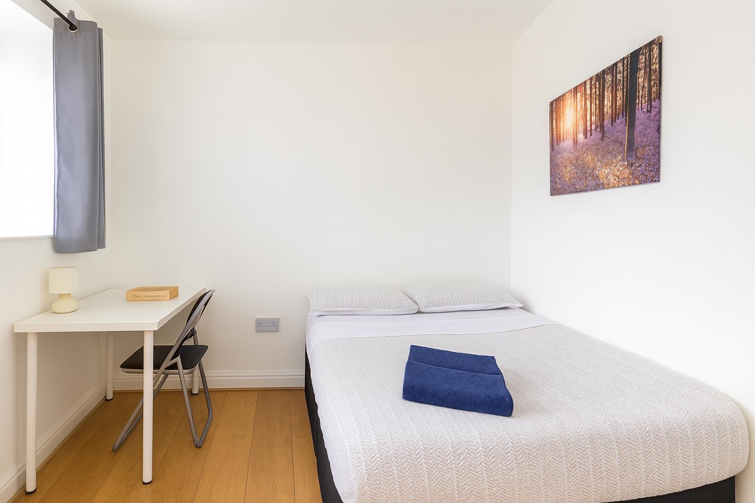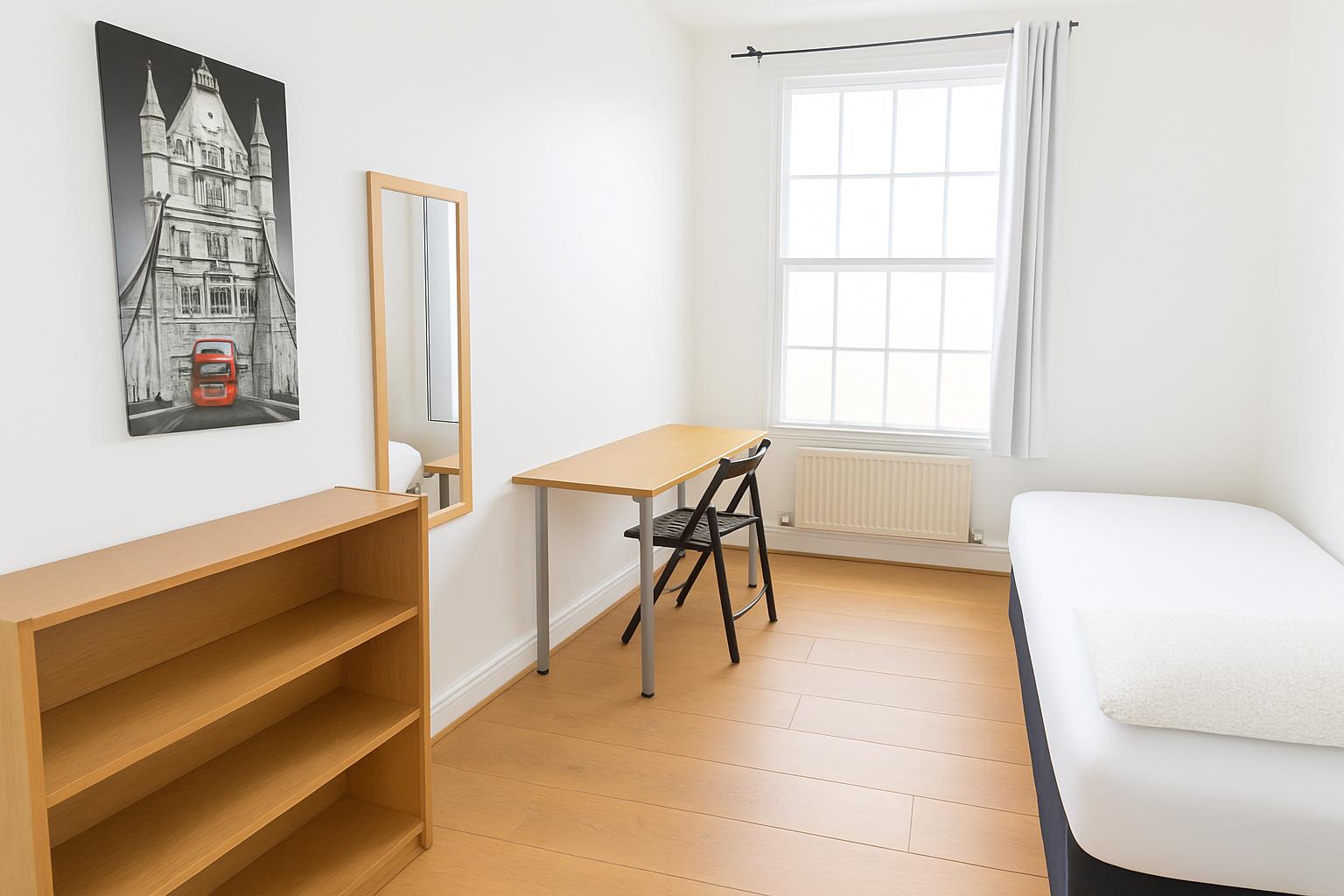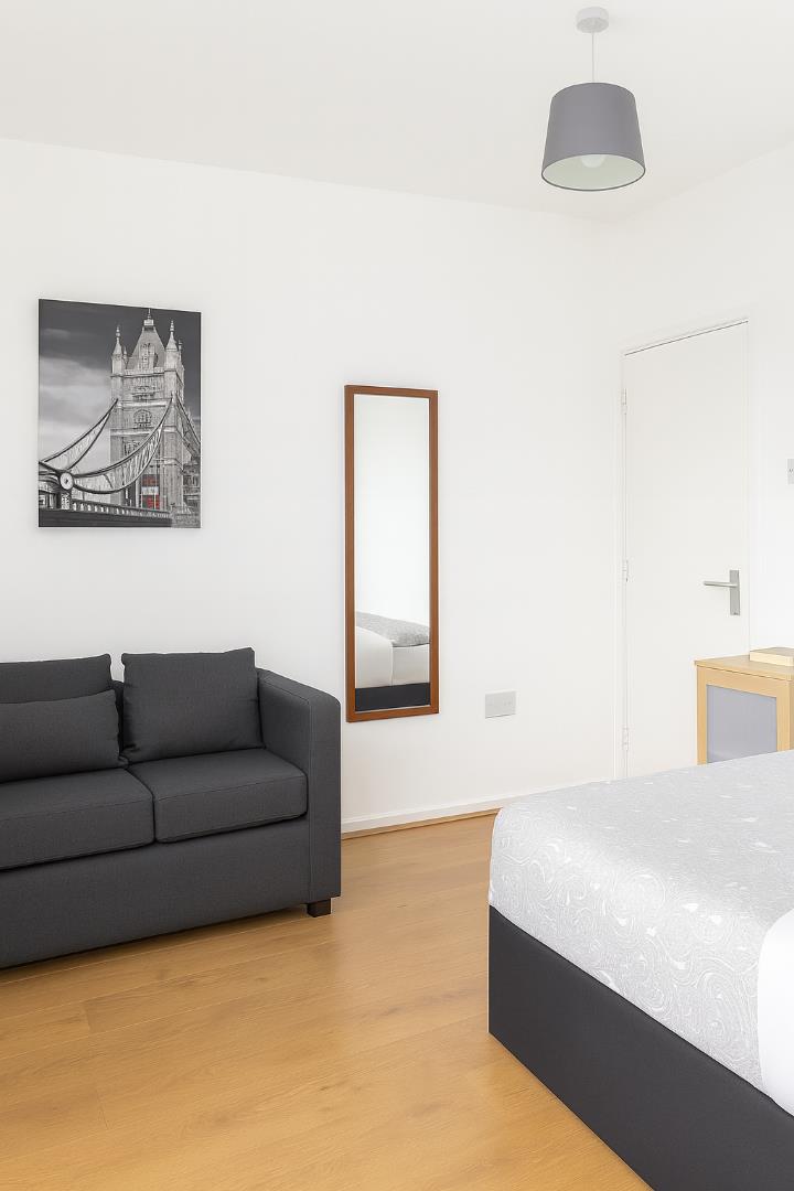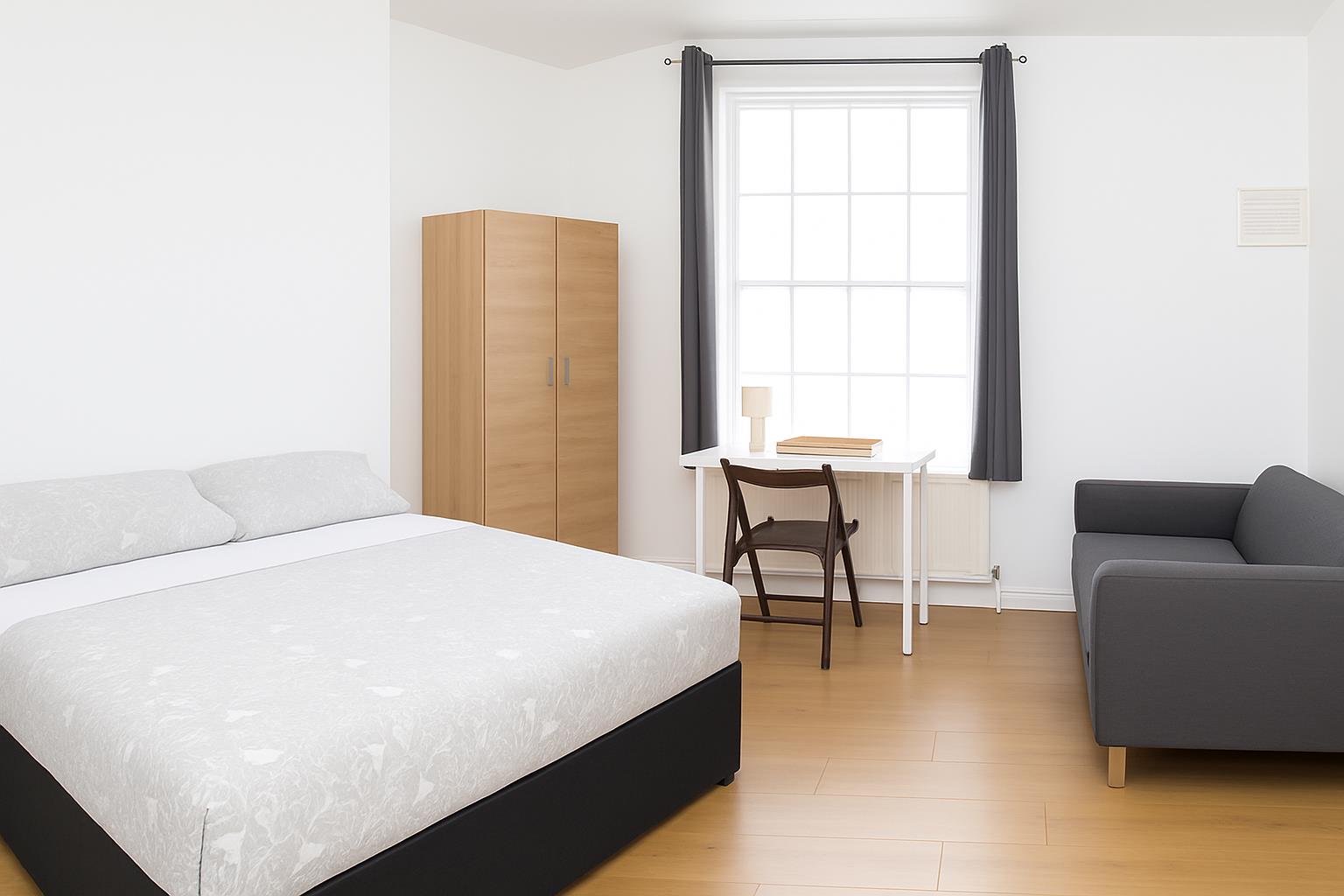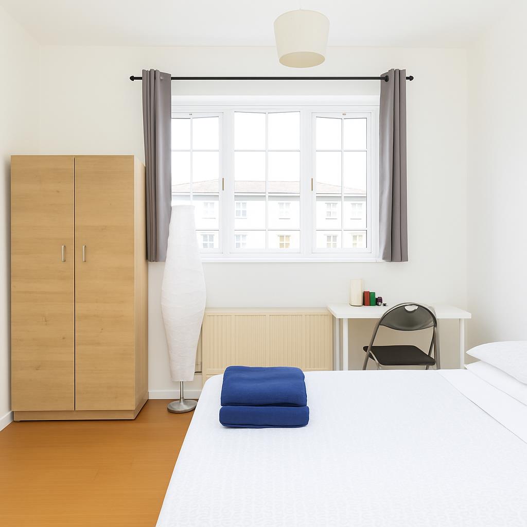 This modern fourth floor flat consists of four spacious double rooms which will come fully furnished, each bedroom has all the necessary furniture; a double bedroom, wardrobe, chest of drawers & desk. There is a fully equipped kitchen with all the necessary white goods. The property has a bathroom and a separate toilet.